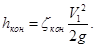 Расчет сопротивления конфузора производится по формуле для определения местных сопротивлений