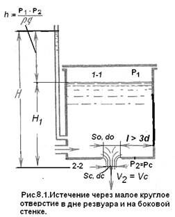 Глубина расположения отверстия в дне или на стенке резервуара во много раз больше диаметра отверстия  Н0 >> dо (рис.8.1).