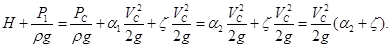Исходные данные: z1=h1, P1 > Ратм, V1 = 0 , в сечении "2-2" : z2=0, Р< Ратм,