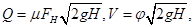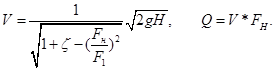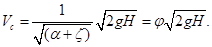 Н = Н1 + Р1 / ρg  - напор истечения,  сумма геометрического и пьезометрического напора,  - коэффициент  скорости для сжатого сечения. Скорость истечения реальной жидкости в сжатом сечении при совершенном сжатии