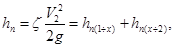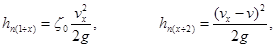 где hп(1+x) потеря при входе в насадок на участке до сжатого сечения струи (х)',hп(х+2) - потеря при расширении потока на участ­ке между сжатым и выходным сечениями.