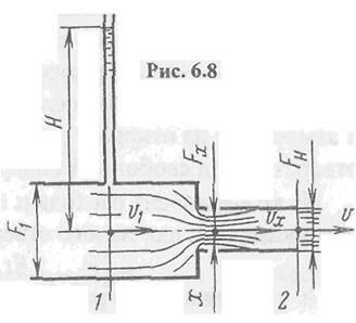 при помощи которого определяются скорость истечения и расход  (сжатие струи на выходе из насадка отсутствует);