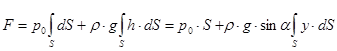 dF = p dS = (pо + ρ gh) dS = pо dS + ρ g h d S,