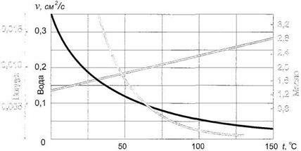 Рис. 2.3. Зависимость кинематической вязкости v от температуры