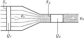 Рис. 2.9. Течение жидкости по трубе переменного сечения