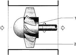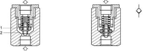 Обратный клапан предназначен для пропускания потока воздуха только в одном направлении. При этом запорный элемент 1 отжимается от седла 2 клапана потоком воздуха. Когда же воздух подается в обратном направлении, клапан закрывается под действием оказываемого им давления и встроенной пружины.