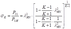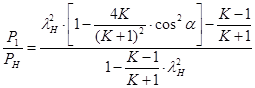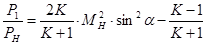 Изменение полного и статического давлений в косом скачке определяется соответсвенными для прямого скачка уравнениями, если вместо lH вставить величину lNH: