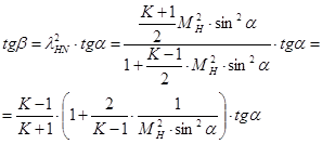 откуда видно, что при одной и той же скорости набегающего потока (MH=const) косой скачек всегда бывает слабее прямого и интенсивность его изменяется с изменением угла наклона фронта скачка к направлению набегающего потока.