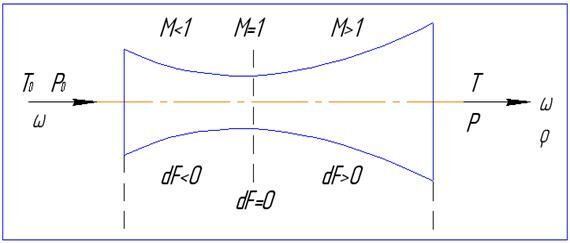 и при достижения критической скорости (M=1) необходимо расширение канала