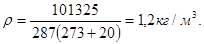 Плотность воздуха при R=287 Дж/(кг . К) в стандартных условиях по формуле (1.11) будет