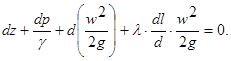 В этих условиях эта формула может быть применена для бесконечно малых участков трубы. Она примет вид:
