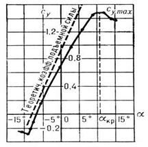 Кроме того, с увеличением угла α зависимость су от α (рис. 2) перестает быть линейной и величина