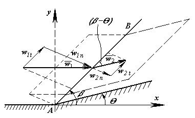 Обращаясь к скоростным треугольникам на рисунке 10.5, приходим к зависимостям для косых скачков: