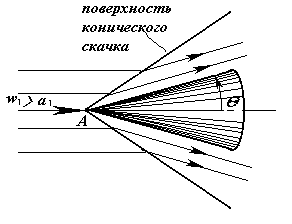 Рисунок 10.8 - Обтекание конуса (иглы) сверхзвуковым потоком