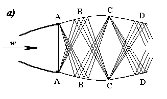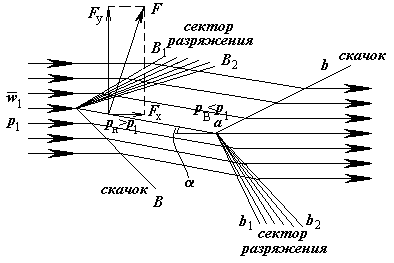 При плавных очертаниях волны разрежения распределяются равномерно; при ломаных - фокусируются в вершинах изломов (см. рисунок 10.11). Если a = 0 (симметричное обтекание). то Fy = 0.