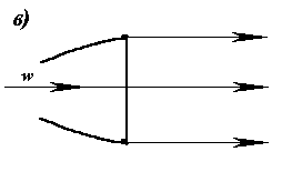 Рисунок 10.12 - а) обтекание внешнего тупого угла при наличии стенки; б) то же, но для поверхности струи