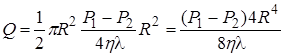Физический смысл формулы: объём Q жидкости, протекающий за секунду через поперечное сечение трубы, прямо пропорционален разности давлений