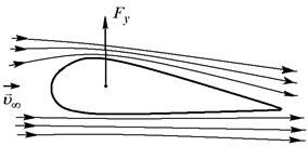 | Сверху профиль крыла выпуклый, линии тока сверху крыла сгущаются, сечение потока уменьшается, скорость больше, чем снизу, где профиль плоский. Циркуляция скорости потока по контуру профиля крыла оказывается отличной |