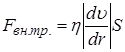 внутреннего течения, приложенный к площадке S, лежащей на границе между слоями, определяется формулой: