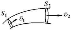 | Возьмём 2 сечения трубки тока (Рис. 5.4). Если жидкость несжимаема, то количество её между этими сечениями остаётся неизменным. Отсюда следует, что объёмы жидкости, протекающие в единицу времени через сечения |