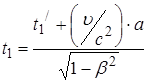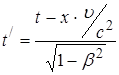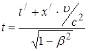 . Воспользовавшись прямыми преобразованиями Лоренца, получим:
