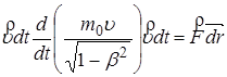 Используя выражение для релятивистского импульса запишем релятивистское уравнение движения: