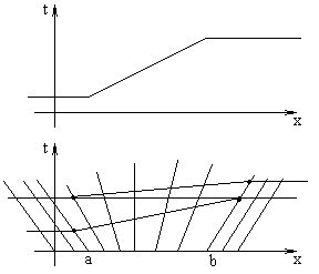 Если хотим получить значения U при t<0, то при нашем направлении характеристик условия должны задаваться на x = b.