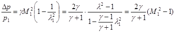 M1 ®1, ТО Dp = p2 – p1 ® 0 (из Прандтля).