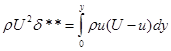 δ* может быть представлена, как линейный отрезок через который проходит секундный объемный расход идеальной жидкости, равный потере расхода через сечение погранслоя из-за торможения в реальном течении. Из-за торможения снижается и количество движения жидкости в погранслое. С количеством движения связана толщина потери импульса: