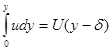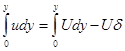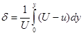 Из-за торможения жидкости линия тока отклоняется от поверхности на расстояние δ. Расход жидкости между поверхностью и линией тока в плоском течении будет равен: