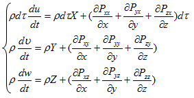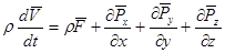 Полученная система называется системой уравнений движения сплошной среды в напряжениях. В левой части стоит полная производная от скоростей, которые могут быть расписаны через локальные и конвективные составляющие ускорения. При определенных условиях левая часть значительно упрощается (стационарное, двухмерное или одномерное течение).