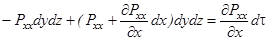 Для определения главного вектора поверхностных сил рассмотрим все силы, дающие проекцию на ось х. Для граней перпендикулярных х проекцию дают только силы, создаваемые нормальными напряжениями. Поэтому равнодействующая этих сил равна: