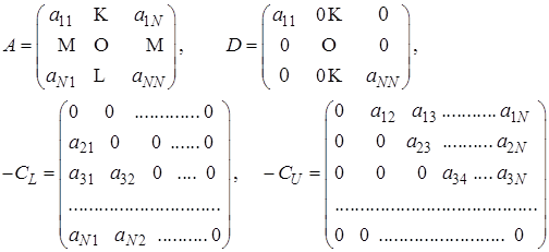 При ленточной схеме хранения или при хранении матрицы в разреженном строчном формате удобен следующий прием вычислений в методе Гаусса-Зейделя. Для каждого