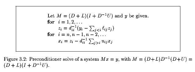 за одну итерацию, надо только уметь обращать исходную матрицу. В общем случае ускорение сходимости достигается за счет приближения спектральных свойств предобуславливателя