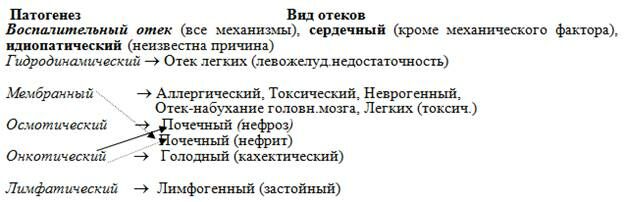 Схема 4 Виды и патогенетические механизмы отеков
