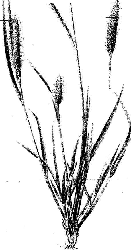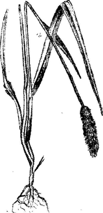 Щетинник зеленый (SetariaviridisP. В.). Однолетнее растение. Стебель высотой 20—60 см; листья линейно-ланцетные, шершавые, с остро-шершавыми краями; соцветие густое, цилиндрическое, длиной 10—20 см; колоски окружены щетинками с зазубринками (рис. 3).