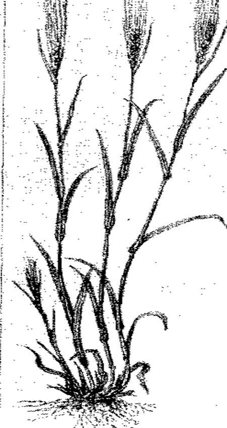 Семейство Злаковых (Gramineae). Многолетние растения с щетиновидно сложенными вдоль листьями, снижней цветковой чешуей, снабженной длинной остью, отпадающей вместе с чешуей (рис. 1). :