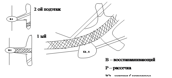 Так, по данным зарисовок горных выработок  составляется  фрагмент геологического паспорта блока.