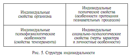 Существует множество разнообразных классификаций уровней индивидуальности. Однако все они сходятся в том, что уровни делятся на четыре блока специфических качеств и свойств (рис. 5).