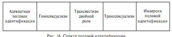 Можно расположить сексуальные девиации, сгруппированные отношением к телесному образу, в спектре между адекватной половой идентификацией и нарушенной (рис. 16).