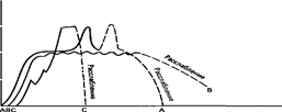 Рис. 6.14 Фазы полового акта. У мужчины после оргазма чаще всего следует рефракторный период, после которого наступает фаза расслабления. У женщины, напротив, возможны разные варианты. А - при продолжающейся стимуляции женщина может испытывать оргазм несколько раз; Б - она может испытывать длительное возбуждение в фазе плато, которое заканчивается фазой расслабления без наступления оргазма; В - у женщины возбуждение может быстро привести к оргазму, за которым сразу наступает фаза расслабления. У некоторых мужчин, возможен ход событий, соответствующий Б, а именно неоднократное возникновение оргазма до эякуляции.
