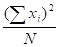 Отметим разницу между (∑xi2), в которой все индивидуальные значения сначала возводятся в квадрат, а потом суммируются, и (∑xi)2, где индивидуальные значения сначала суммируются для получения общей суммы, а потом уже эта сумма возводится в квадрат.