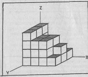 Особую разновидность графических изображений экспериментальных результатов представляют собой гистограммы. Это столбчатые диаграммы (рис. 78), состоящие из вертикальных прямоугольников, расположенных основаниями на одной прямой. Их высота отражает степень или уровень развитости того или иного качества у испытуемого. Цифры, указывающие на частоту встречаемости качества в выборке испытуемых, размещаются или внутри столбцов гистограммы, или над ними, или по вертикальной оси графика. Иногда для наглядности, особенно в том случае, если гистограмма соответствует трехмерному пространству, ее изображают как объемную (рис. 79).