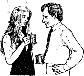 Рис. 9. Отрицательная реакция женщины, на чью территорию вторгается мужчина. Она отклоняется назад, пытаясь установить нужную дистанцию. Однако, беда заключается в том, что мужчина может оказаться сельским жителем с маленьким объемом личного пространства, он пытается приблизиться на расстояние, которое больше устраивает его. Женщина может воспринять это движение как сексуальный жест