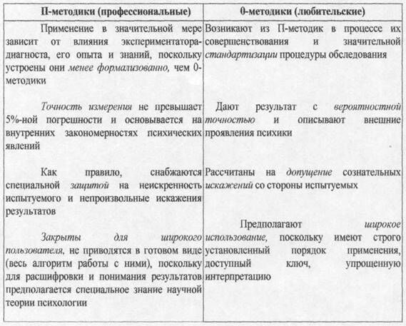Таким образом, эти методики психодиагностики можно разграничить следующим образом: