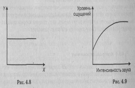 Первый, он же простейший, — отсутствие зависимости, Графически он выражается в форме прямой, параллельной оси абсцисс на графике, где по оси абсцисс (X) отложены уровни независимой переменной. Зависимая переменная не чувствительна к изменению независимой (см. рис. 4.8).