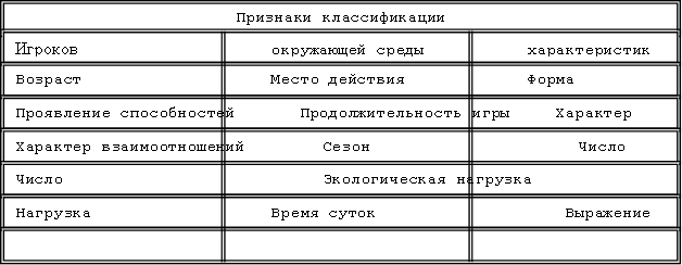 Единая и исчерпывающая классификация игр отсутствует. Однако выделяют некоторые признаки классификации игр.