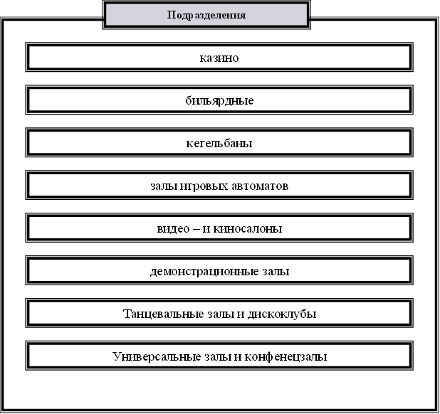Структура подразделений, которые организовывают досуг гостей в гостинице.