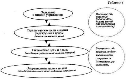 Итак, подводя некоторые итоги, отметим, что все рассмотренные виды планов самым тесным образом связаны с целями каждого социокультурного учреждения. Цели учреждения на всех уровнях планирования имеют определенные характеристики.