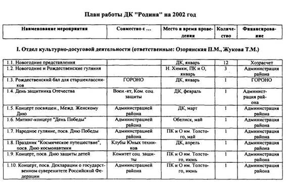 Во многих социокультурных учреждениях по финансовым и другим причинам происходит сокращение работников среднего звена и передача их функций рядовым сотрудникам, что, в общем-то, не всегда отрицательно влияет как на процесс планирования, так и на содержание деятельности этих учреждений.